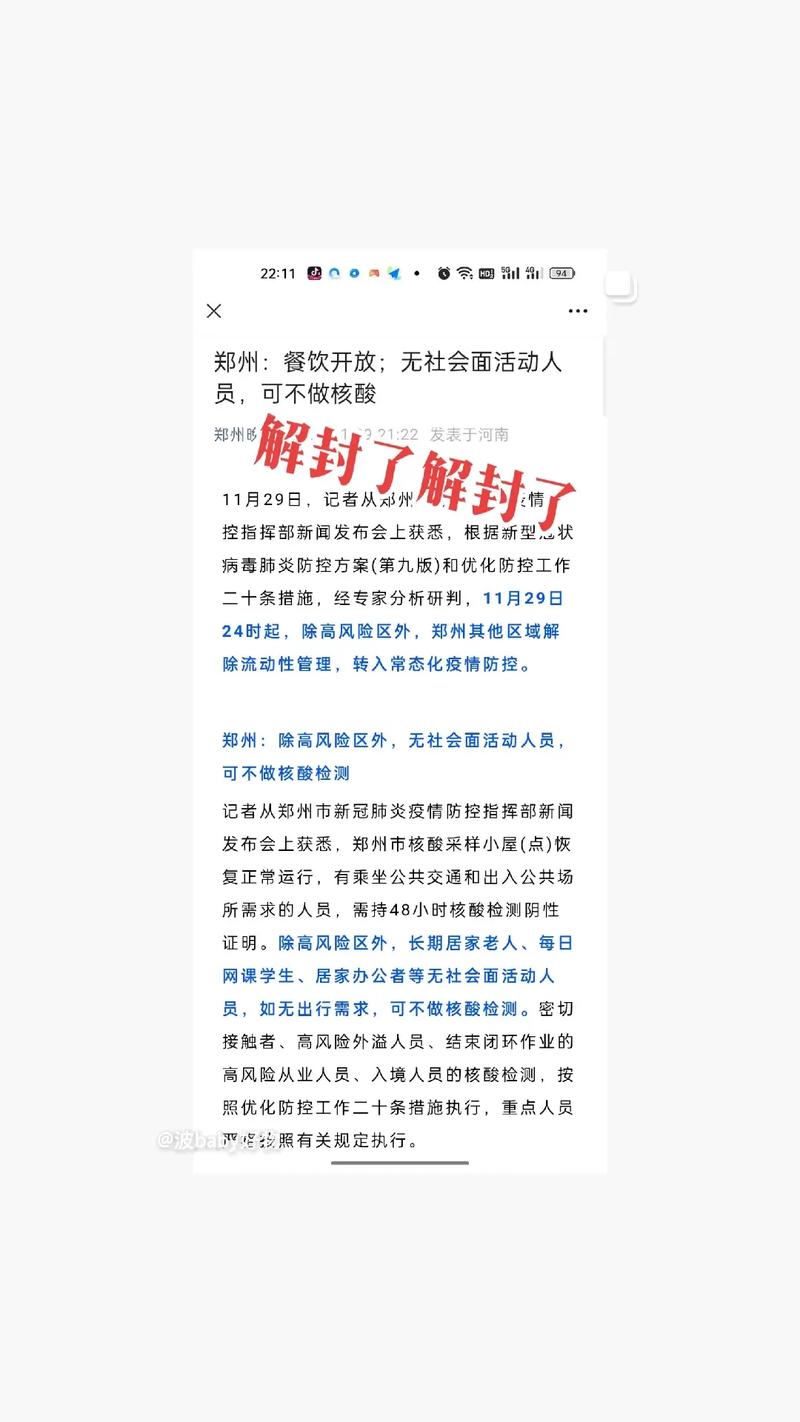 郑州荥阳疫情解封时间查询,是2022年11月11日吗?
