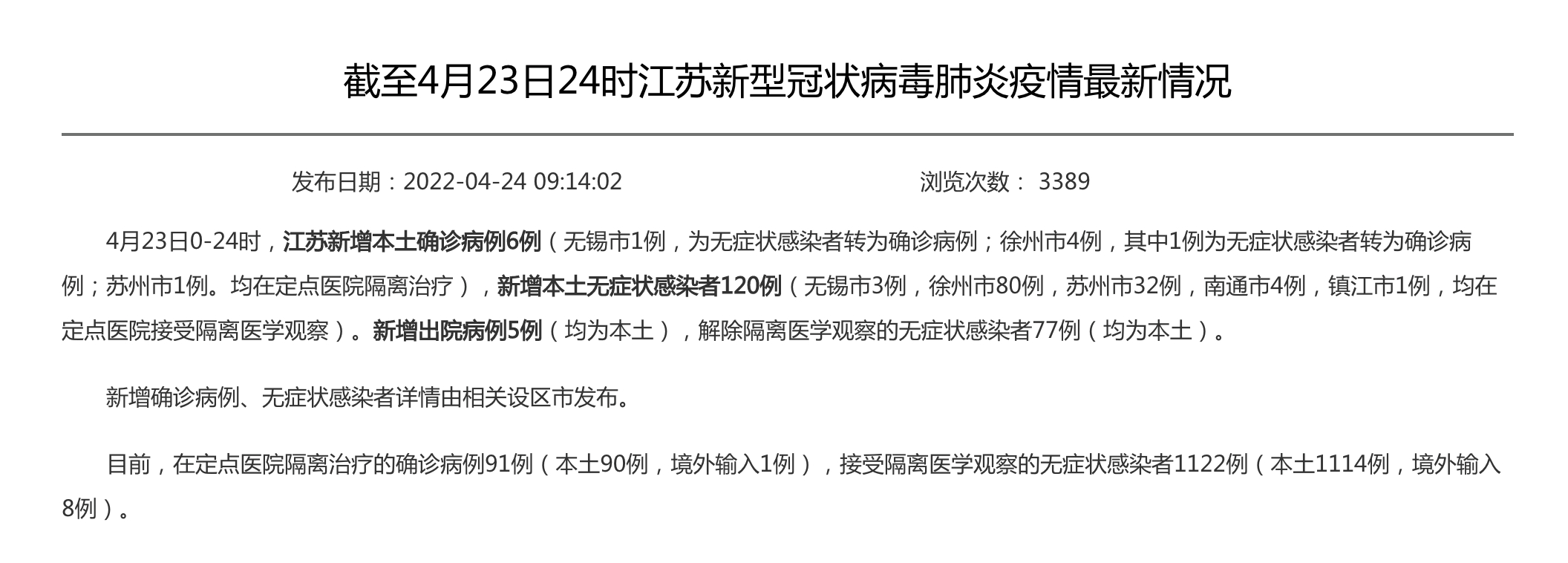 4月17日至23日江苏新增本土确诊病例及无症状感染者情况